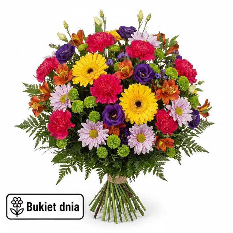 Bukiet Dnia powstaje z najświeższych kwiatów dostępnych danego dnia w kwiaciarni. Każde zamówienie realizowane jest indywidualnie, a wygląd bukietu pozostaje miłą niespodzianką. W kompozycjach wykorzystywane są kwiaty sezonowe i całoroczne, co pozwala stworzyć estetyczną i trwałą aranżację. To idealny wybór na każdą okazję. Zamów bukiet z dostawą na terenie Legnicy, a my zadbamy o jakość realizacji.